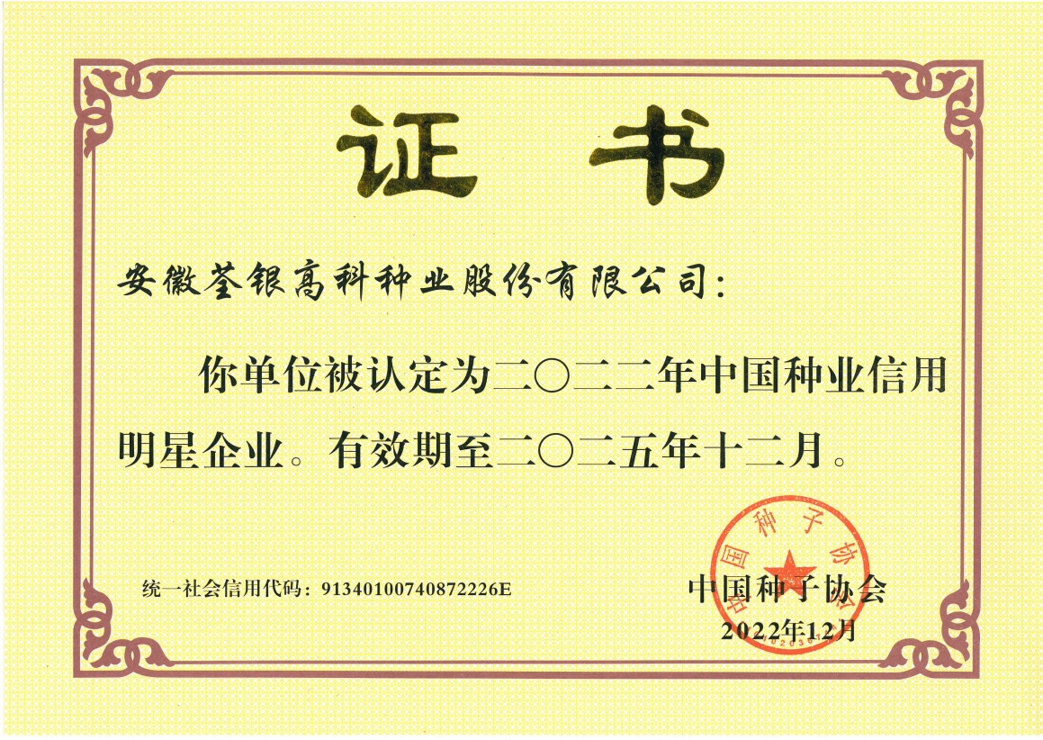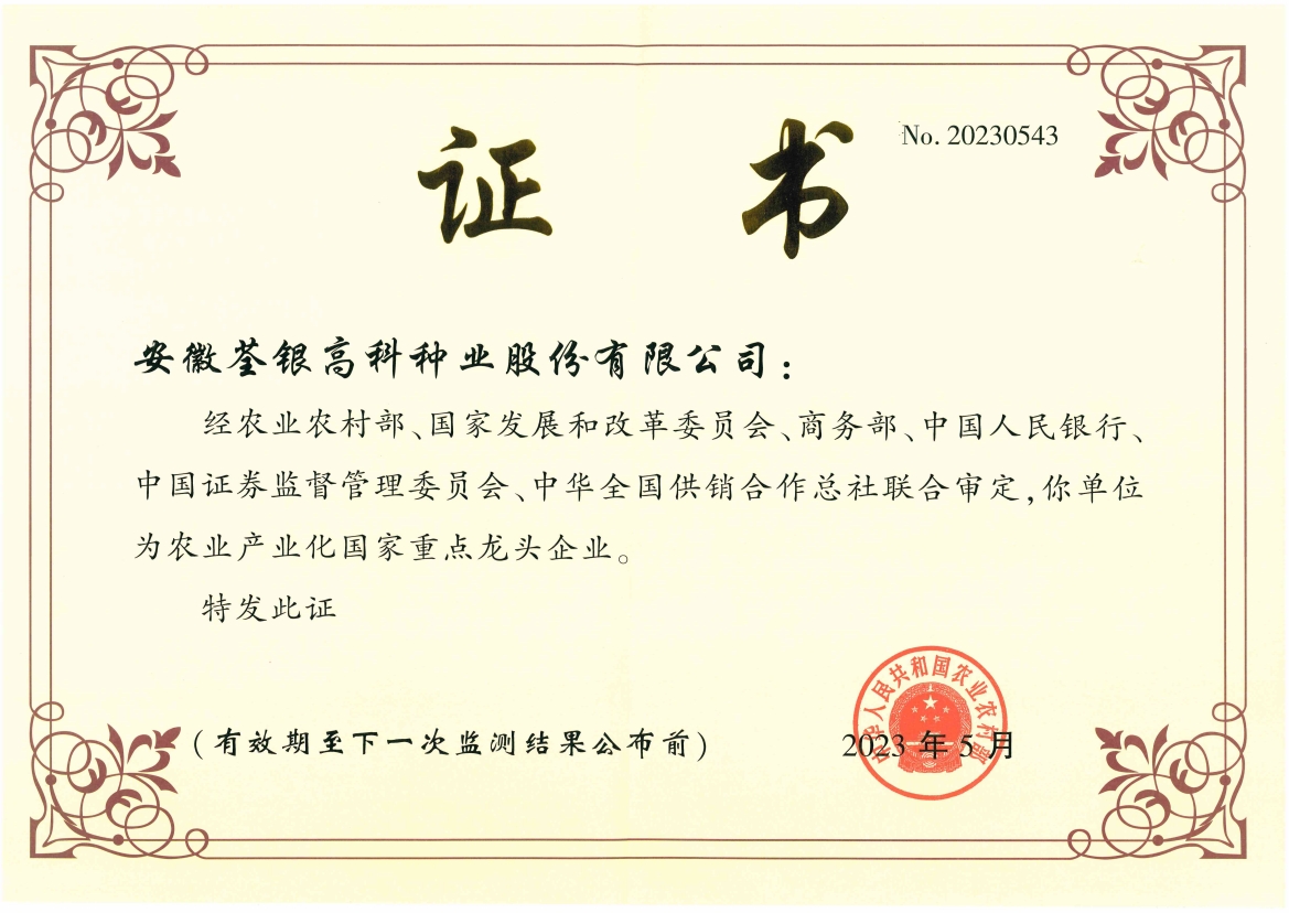 安徽荃銀高科種業(yè)股份有限公司是一家“以種業(yè)為核心、農(nóng)業(yè)服務為延伸、探索和創(chuàng)新農(nóng)業(yè)多元化發(fā)展”的現(xiàn)代高科技種業(yè)上市公司,證券代碼:300087。公司注冊資金9.47億元,系“中國種業(yè)領軍企業(yè)、農(nóng)業(yè)產(chǎn)業(yè)化國家重點龍頭企業(yè)、國家高新技術企業(yè)、農(nóng)業(yè)部首批農(nóng)作物種子育繁推一體化企業(yè)、中國種業(yè)信用明星企業(yè)"。在國內(nèi)控股子公司20多家,在國外設立分支機構(gòu)4家,良種銷售至全國20多個省(市、區(qū)),出口覆蓋20多個國家與地區(qū),種業(yè)綜合實力、雜交水稻研發(fā)、推廣及海外業(yè)務規(guī)模均居全國種子企業(yè)前2位。